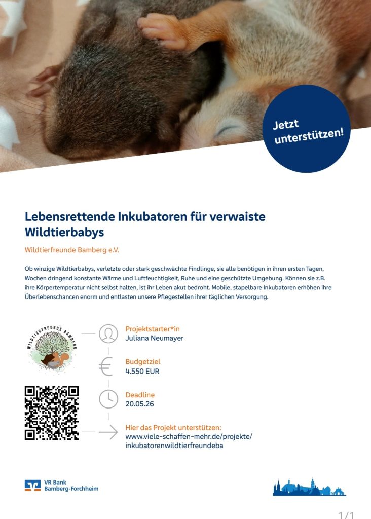 Unterstütze unser Projekt der Wildtierfreunde Bamberg e.V. und hilf dabei, diesen kleinen Leben einen sicheren Start zu ermöglichen.